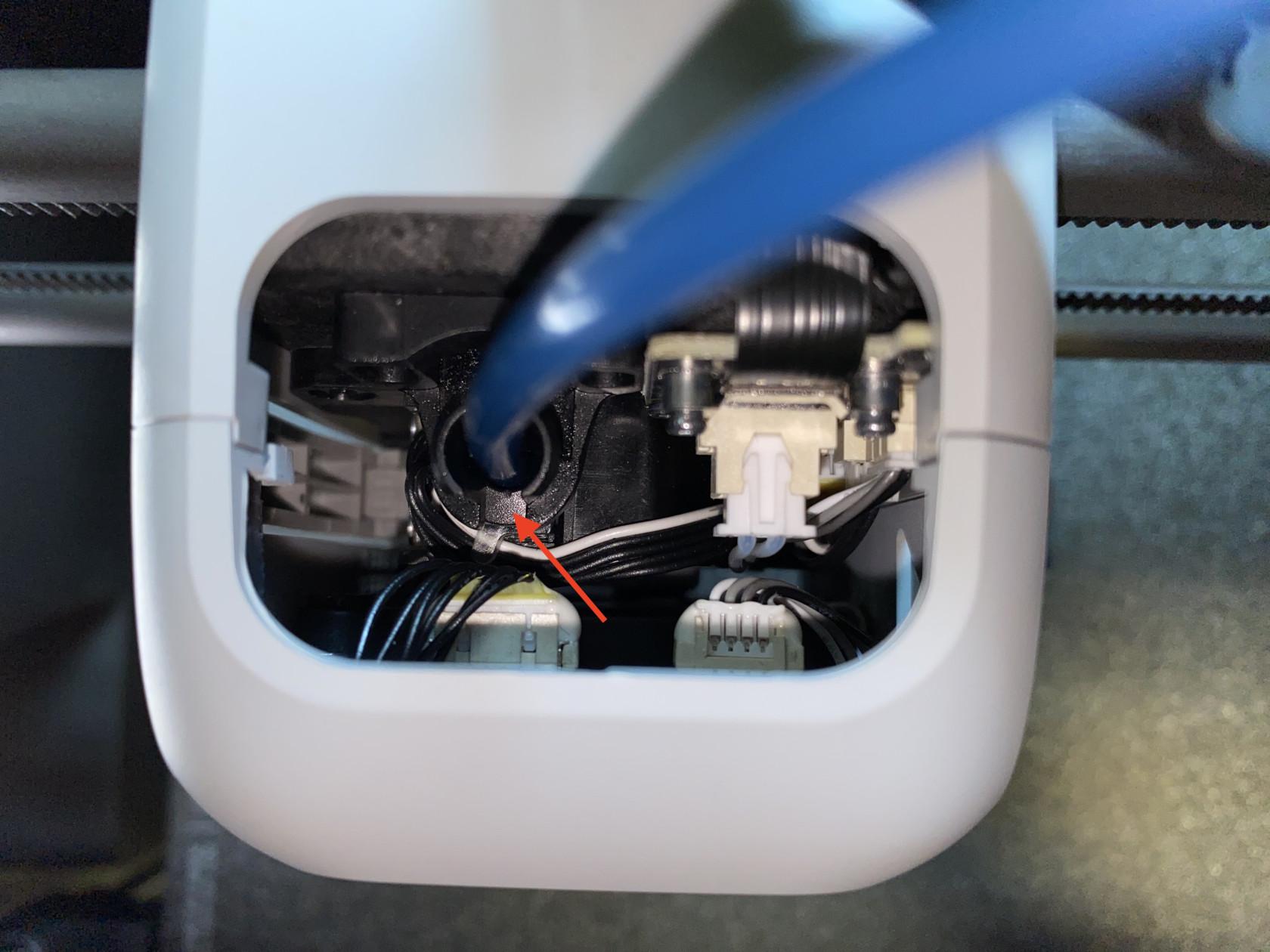 Look at where the tube enters the extruder; there is a small gap on the side.