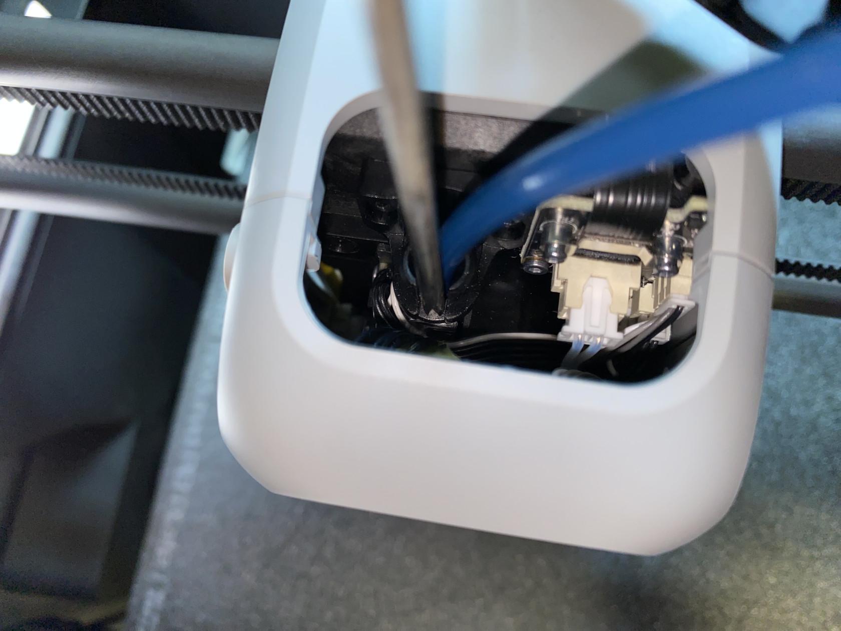 To fix the issue, you’ll need to remove the feeder tube from the extruder and push the broken filament though until it’s all out.