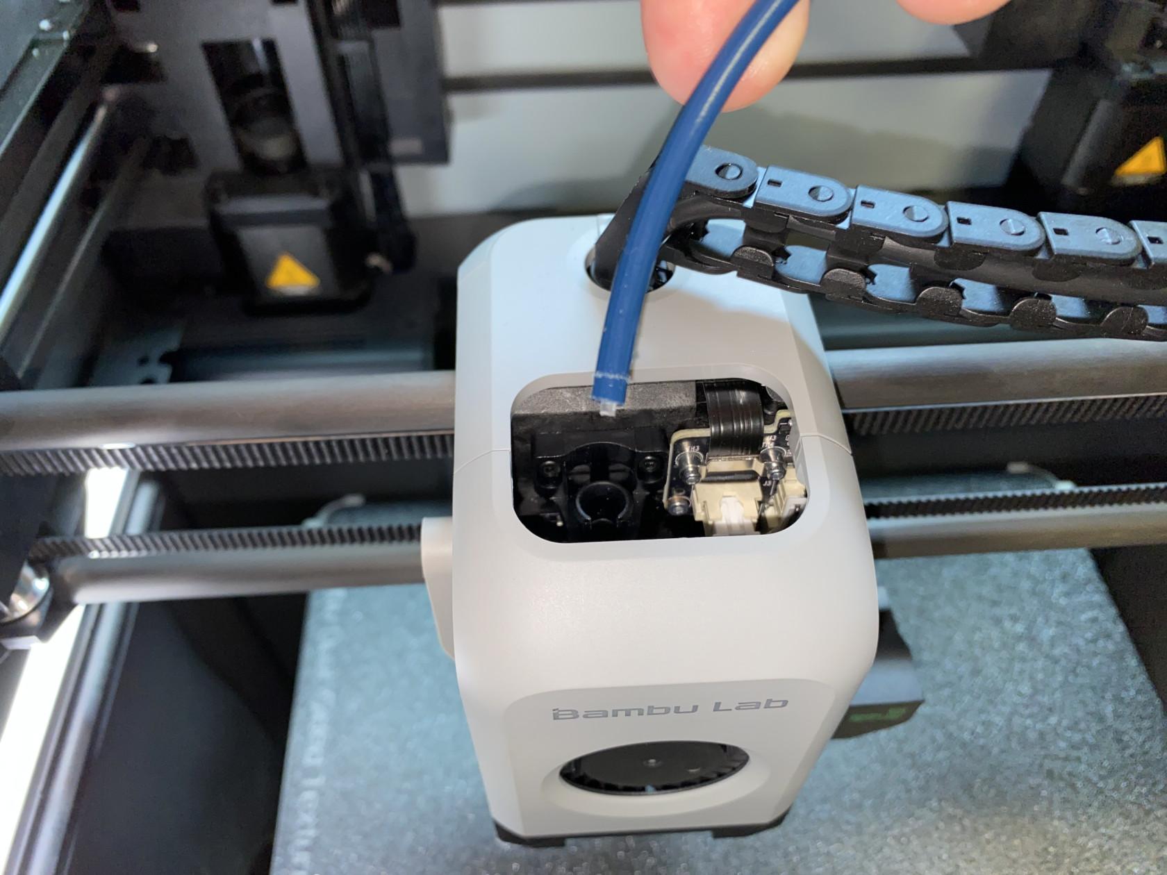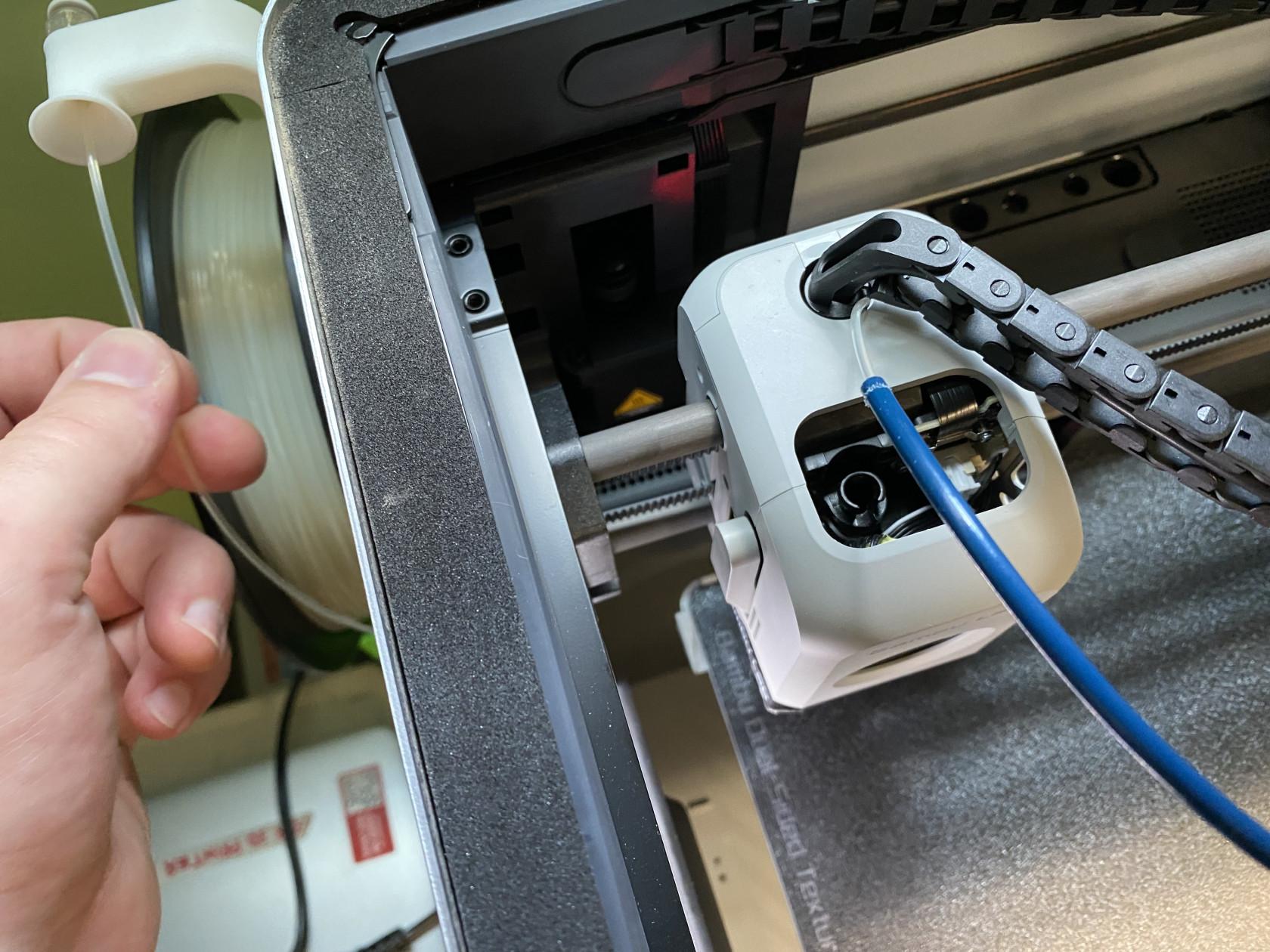 You can verify that all the broken pieces have been removed by pulling on the extruder side of the tube and ensuring that the filament on the spool side of the tube moves. Keep in mind that there might be multiple breaks, so don’t skip this step!