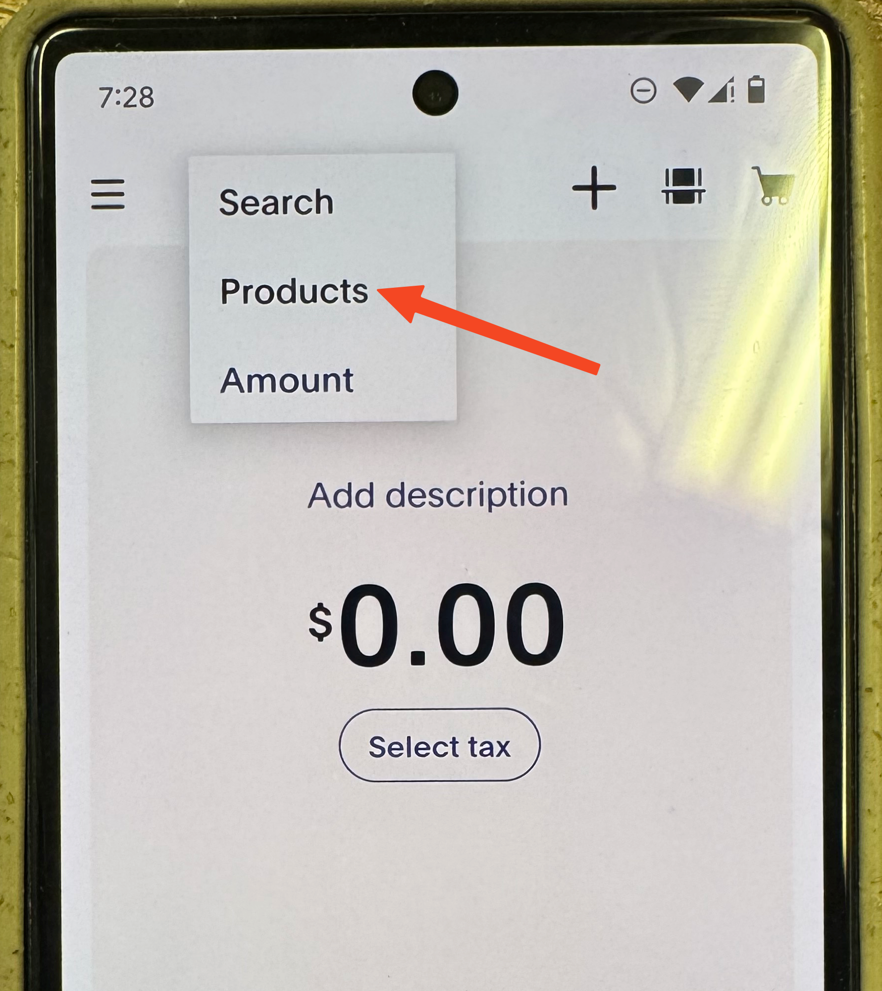 - Click the “Amount” text at the top of the screen and select “Products”.
