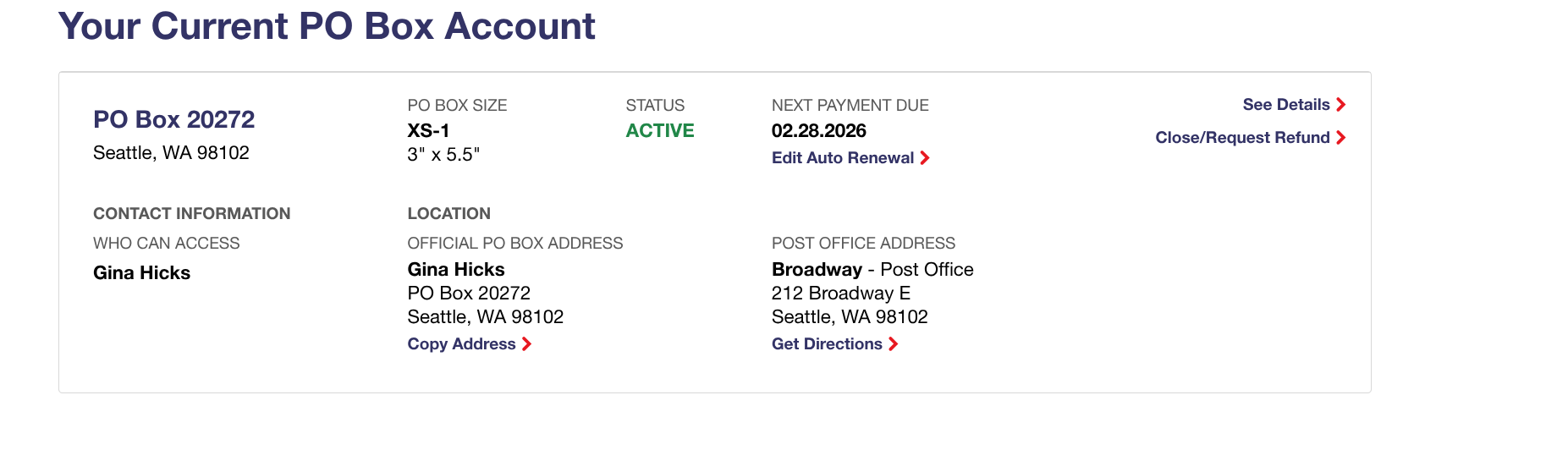 Please make sure to only send letters, envelopes, and very small packages to this PO Box. It’s very small! If you want to order something bigger for the tool library, send it to your home or other trusted address.