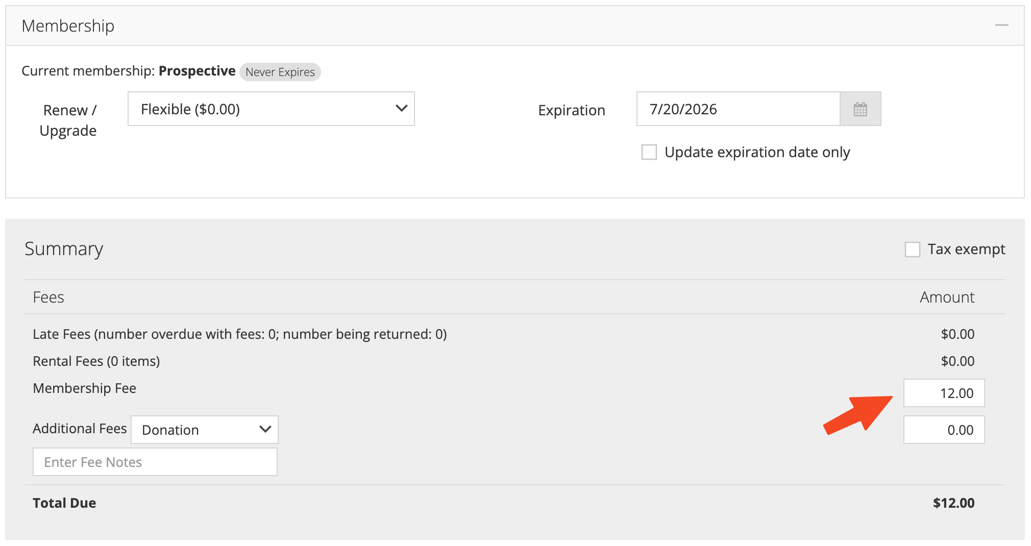 Ask the member which membership type they’d like to sign up for. All membership types grant exactly the same privileges. If they choose the “Flexible” option, you can enter the membership fee in the field below. ($0.00, aka free, is a valid option):